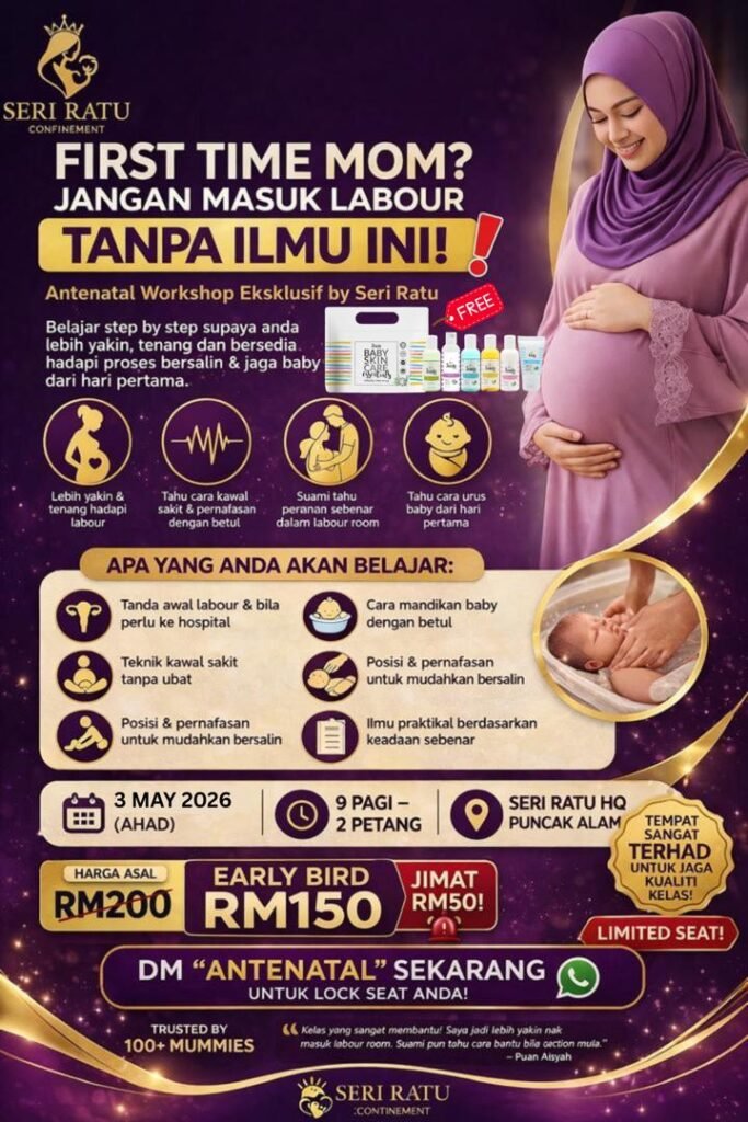 Join our exclusive antenatal workshop khas untuk bantu anda jadi lebih yakin, tenang & fully prepared menghadapi proses bersalin dan penjagaan baby.