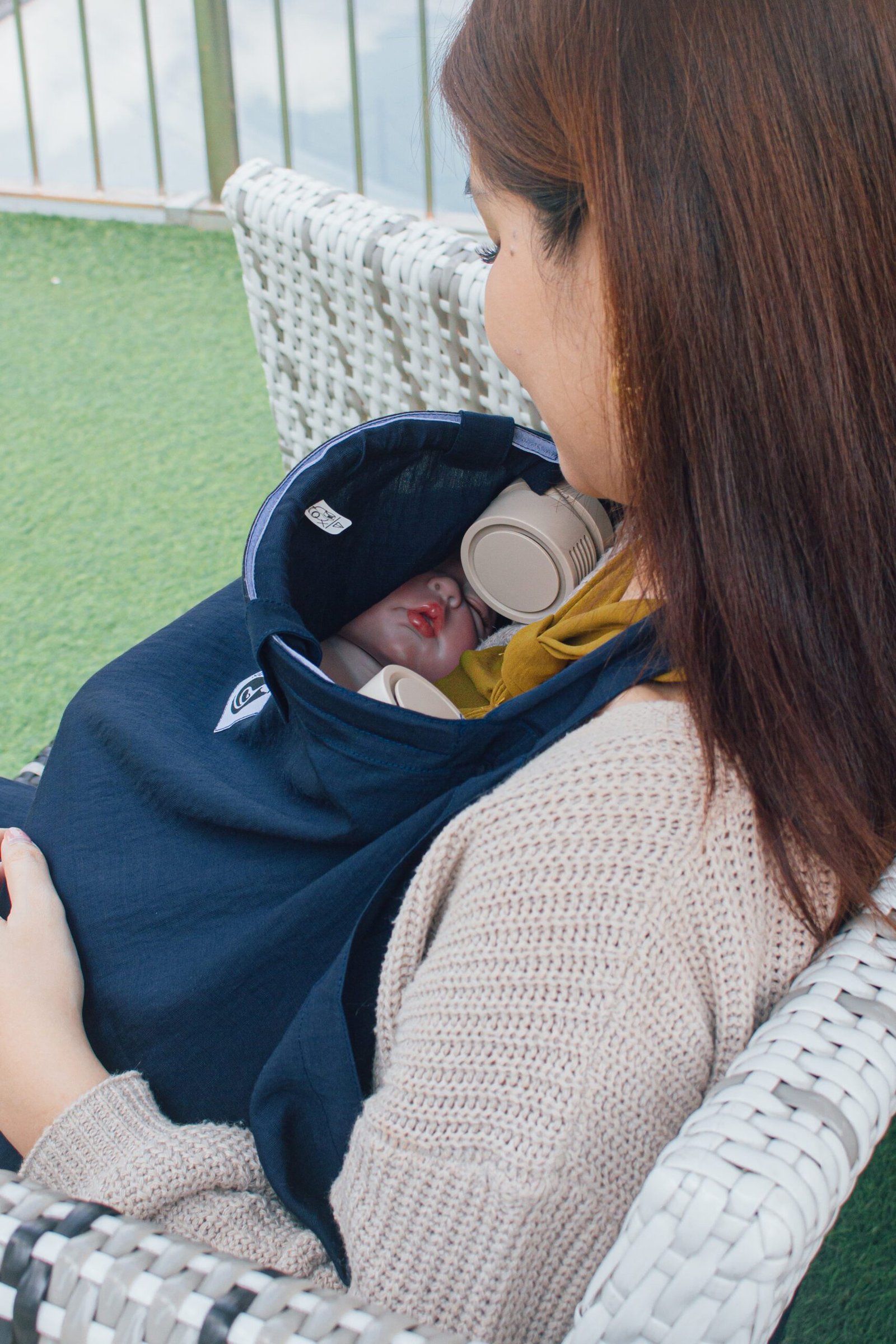 The first nursing cover in Malaysia with a gentle bladeless fan — comfort and connection in every feed.