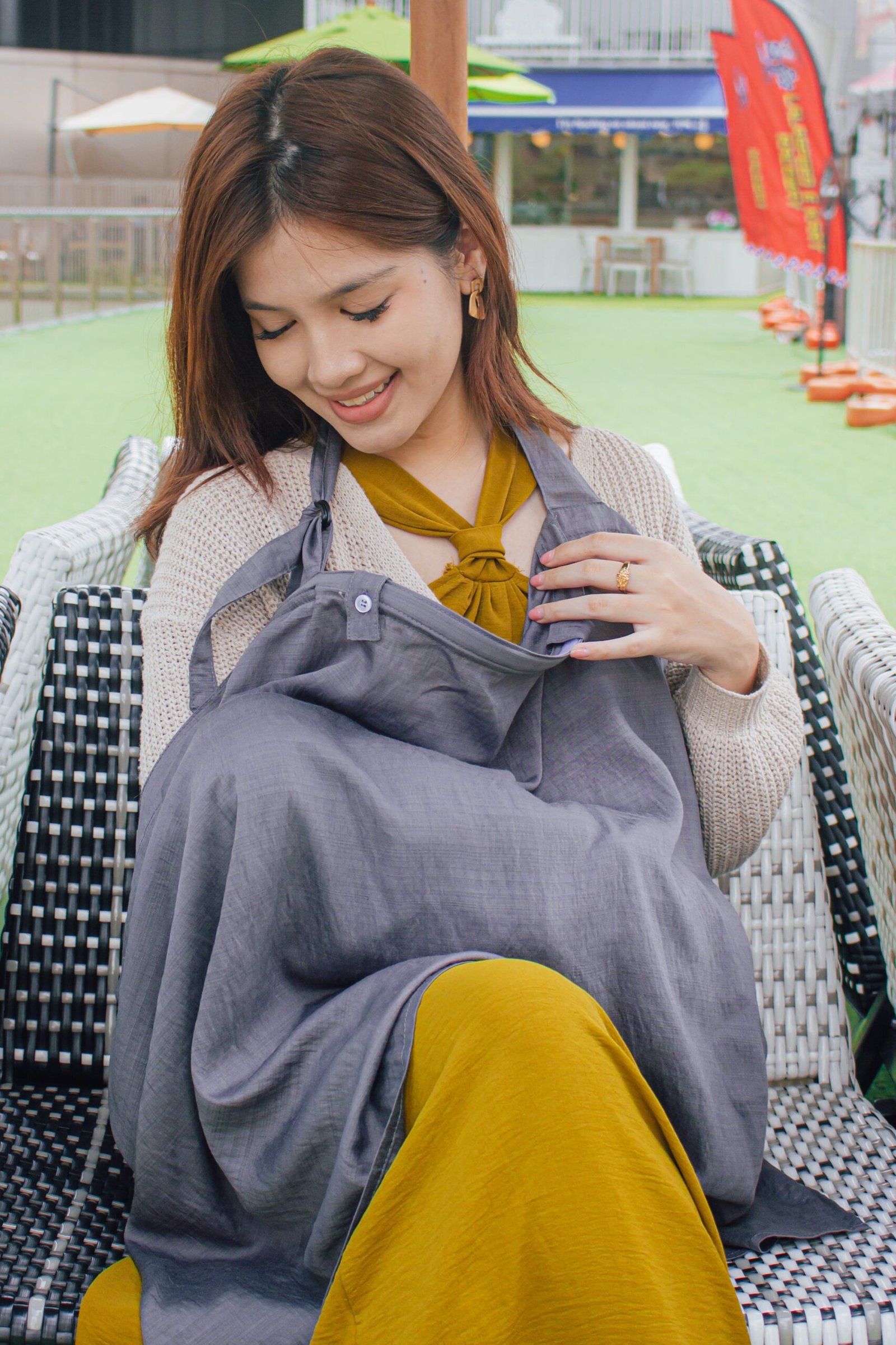 Watch how [KOL’s Name] stays cool and connected with her baby — using Malaysia’s first nursing cover with a bladeless fan.
